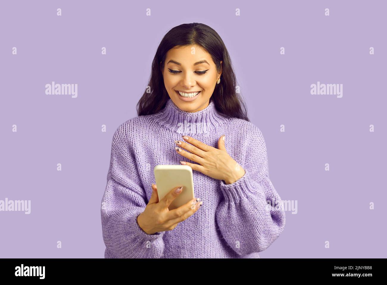 Woman Holding Phone Happy Reaction Hi Res Stock Photography And Images Alamy